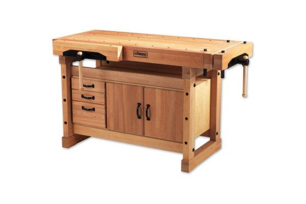 The Elite is quality all the way; construction, materials, design and finish. This Sjöbergs bench comes with the SM03 beech fronted cupboard and drawer unit.
